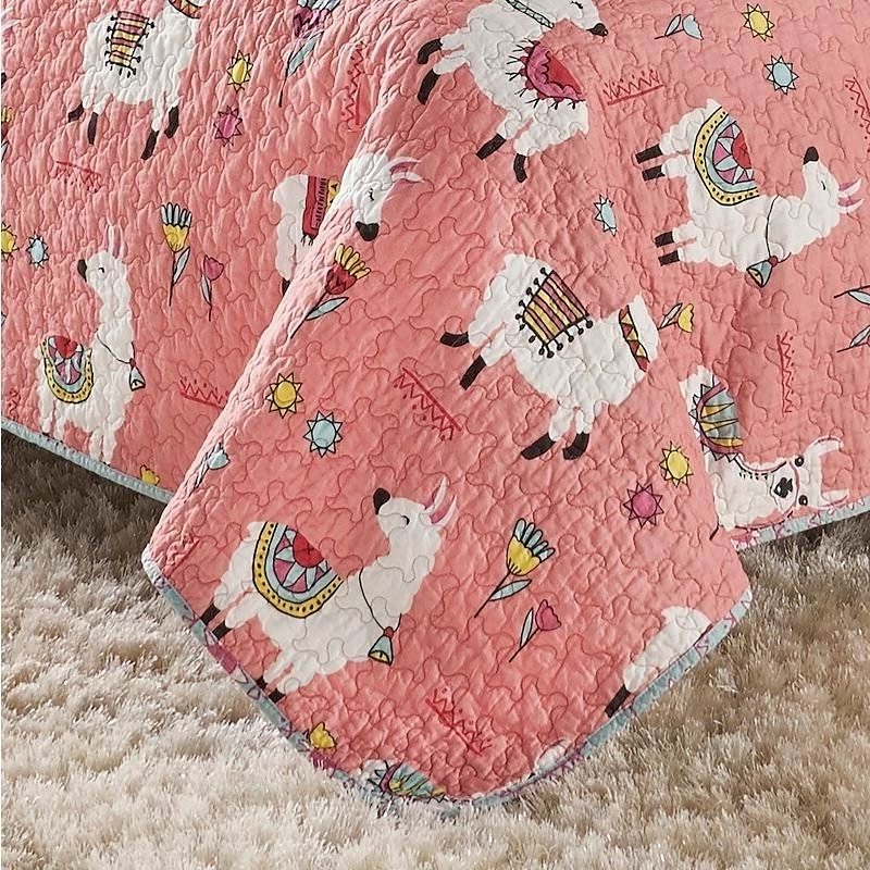 Full/Queen Pink Blue Reversible Floral Llama 100-Percent Cotton Quilt Set Full/Queen Pink Blue Reversible Floral Llama 100-Percent Cotton Quilt Set Full/Queen Pink Blue Reversible Floral Llama 100-Percent Cotton Quilt Set