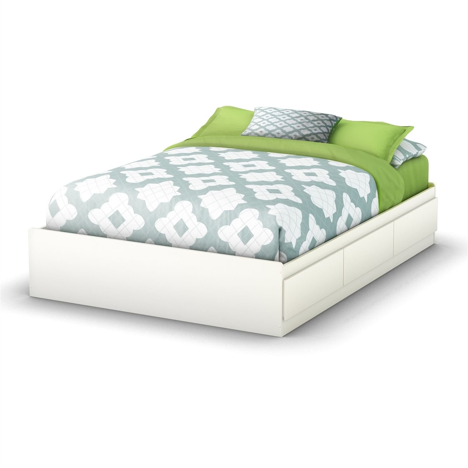 Full size Contemporary Platform Bed with 3 Storage Drawers in White Full size Contemporary Platform Bed with 3 Storage Drawers in White