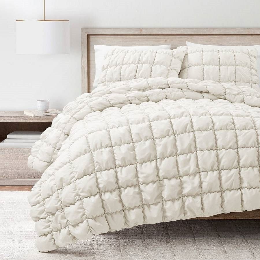 Full/Queen Soft Lightweight Puff Textured 3-Piece Comforter Set in Off White Full/Queen Soft Lightweight Puff Textured 3-Piece Comforter Set in Off White Full/Queen Soft Lightweight Puff Textured 3-Piece Comforter Set in Off White