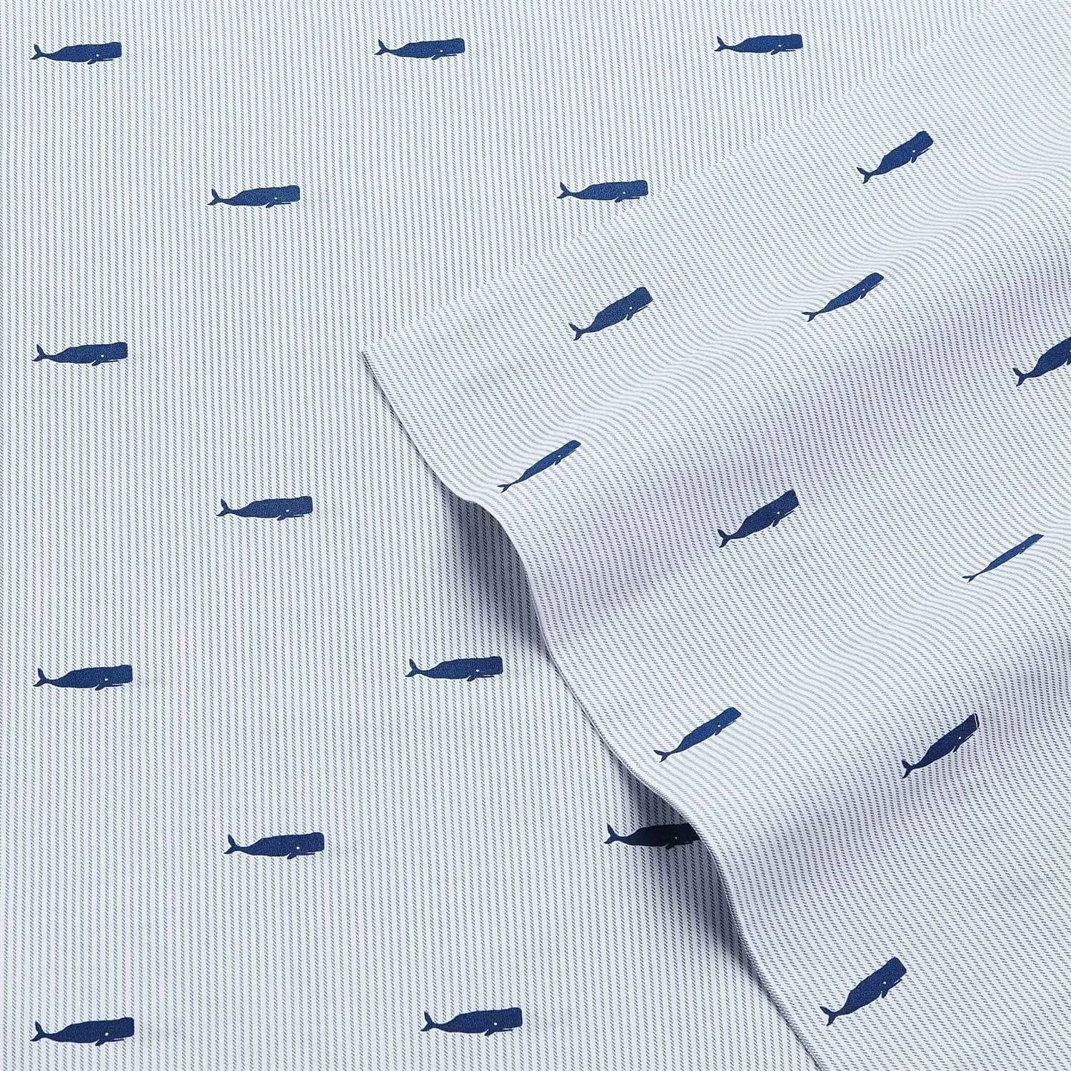 Add a touch of excitement to your bedding ensemble with the Twin size Coastal Beach 100-Percent Cotton Navy Blue White Stripe Sheet Set. Sheets and coordinating pillowcases utilize the classically cool nautical windowpane cotton percale sheeting layers in a tonal navy and chambray palette ground. The fitted sheet has elastic on all sides which ensures a perfect fit and prevents the sheet from slipping off of the mattress. Machine wash, cold, do not bleach, Tumble dry, gentle and low heat, Iron, low.
