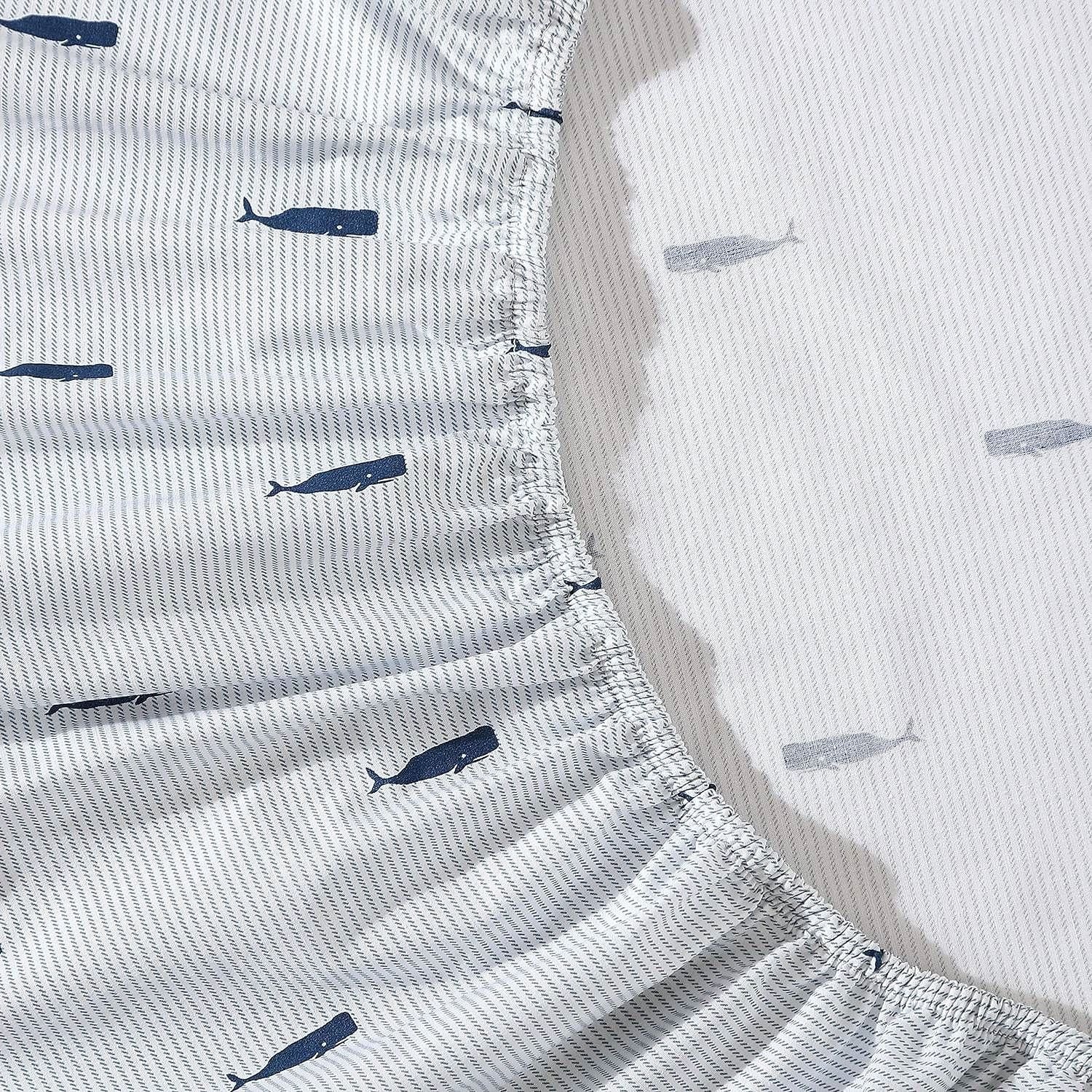 Twin size Coastal Beach 100-Percent Cotton Navy Blue White Stripe Sheet Set